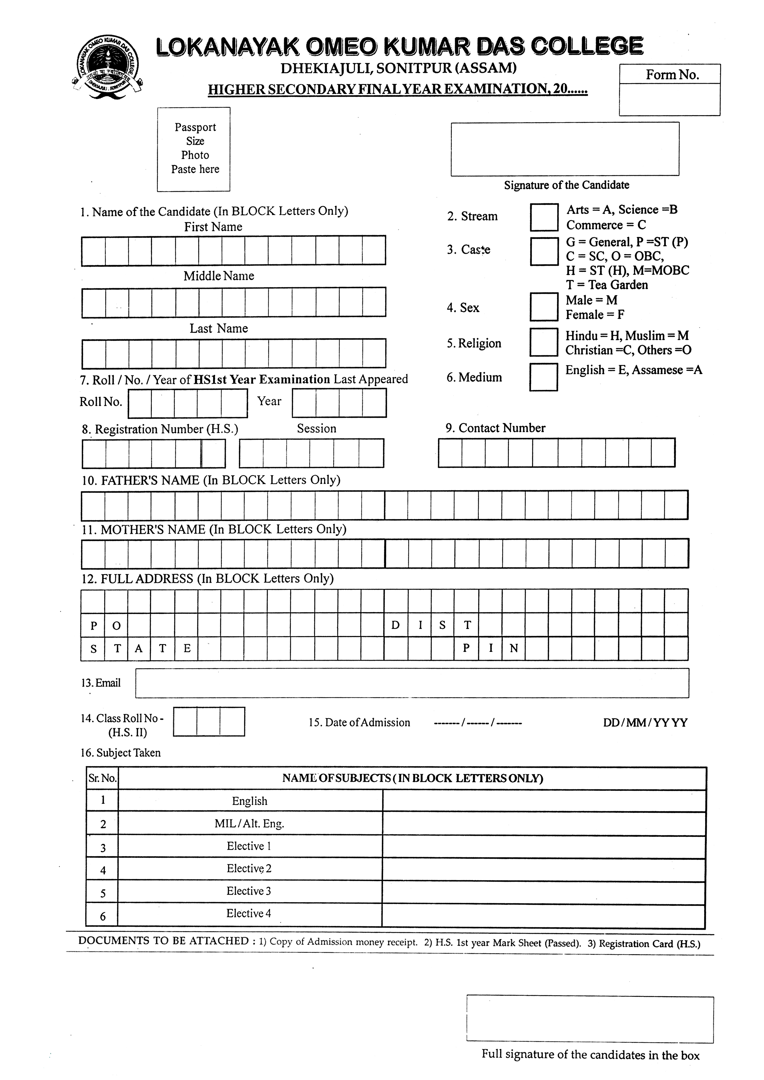 2025-10-17-HS 2nd year Exam Form Fill Up, 2025-