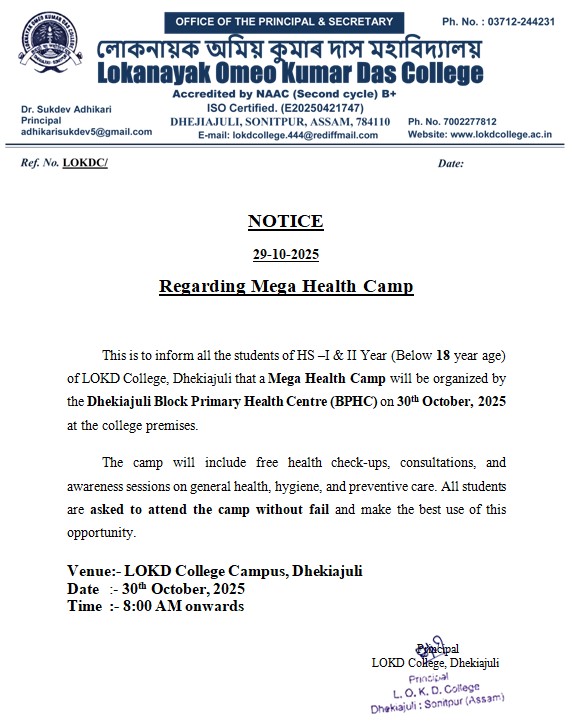2025-10-29-Mega Health Camp at LOKD College, Dhekiajuli-