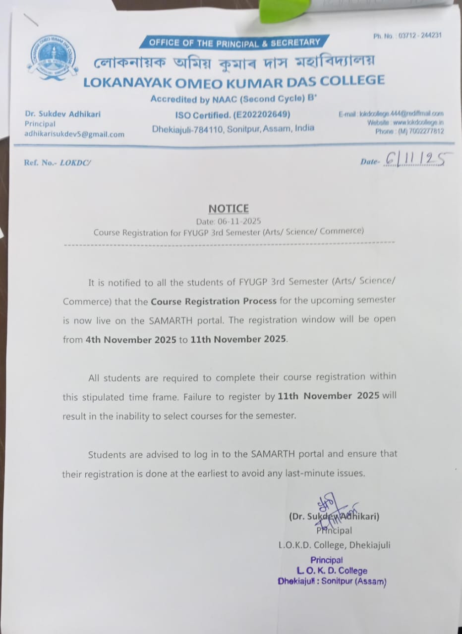 2025-11-06-Notice for FYUGP 3rd Sem students Regarding Course Registration-