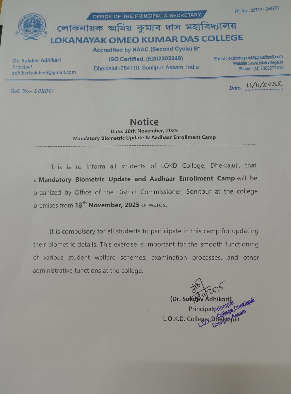 2025-11-11-Mandetory Biomatric Update & AADHAAR Enrollment camp-
